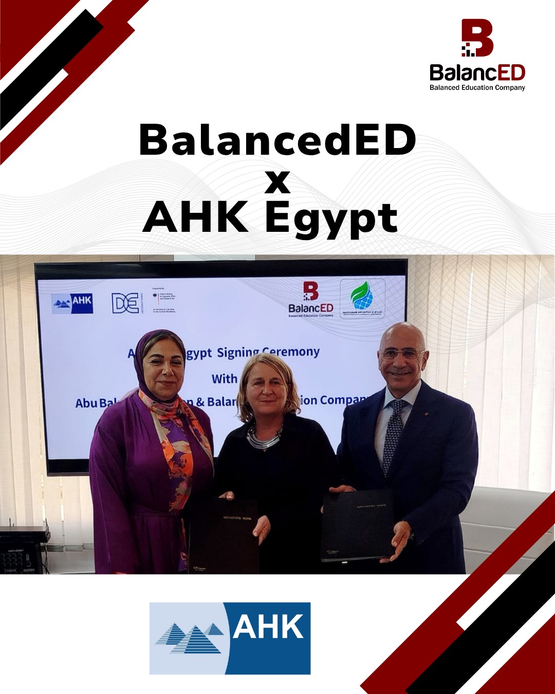 In 16th of July, BalancedED proudly signed a joint cooperation protocol with the German-Arab Chamber of Industry and Commerce (A.H.K) to collaborate on the accreditation of Applied Technology Schools affiliated with the AbouBakr Foundation for Technical and Applied Technology Education.